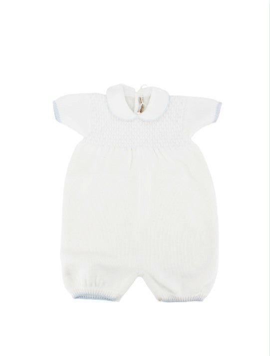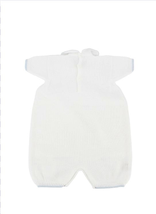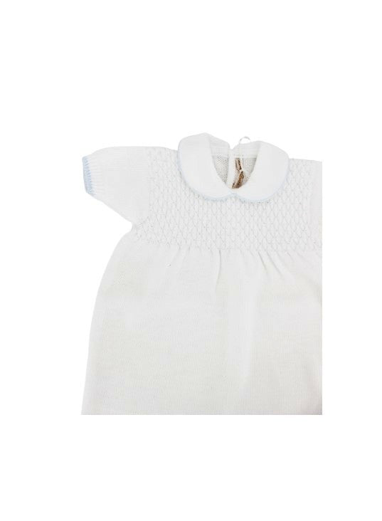 Pagliaccetto Little Bear in filo bianco con dettagli cielo.