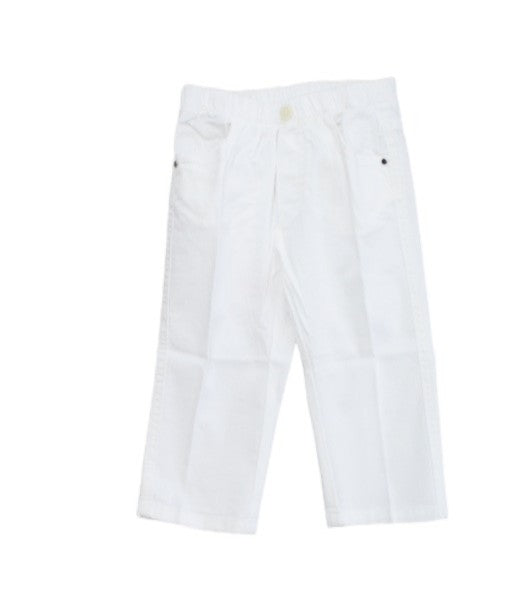 Pantalone in cotone, modello cinque tasche, vita elasticizzata.