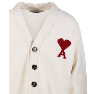 Amis Paris Cardigan avorio in lana con Coeur UKC367.018A