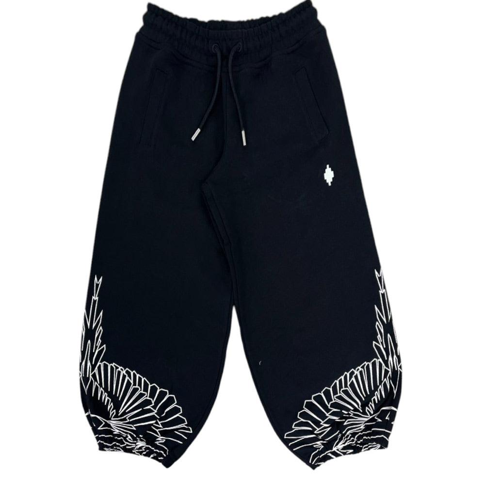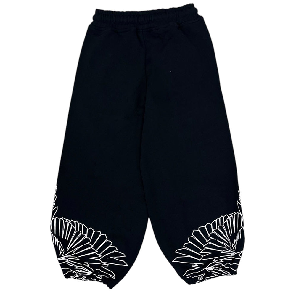 Pantaloni jogger realizzati in cotone sgarzato, caratterizzati da vita elasticizzata con coulisse, due tasche laterali all'americana e fondo con elastico alla caviglia. Sono decorati con iconico motivo ali sul fondo.