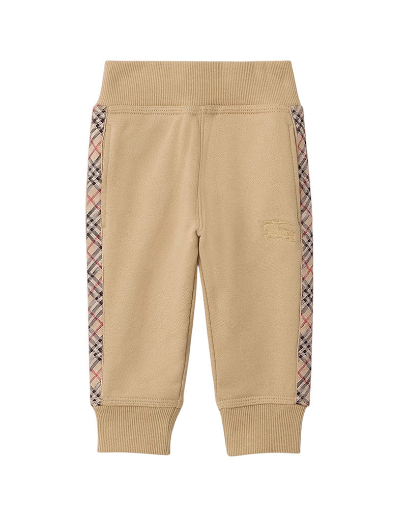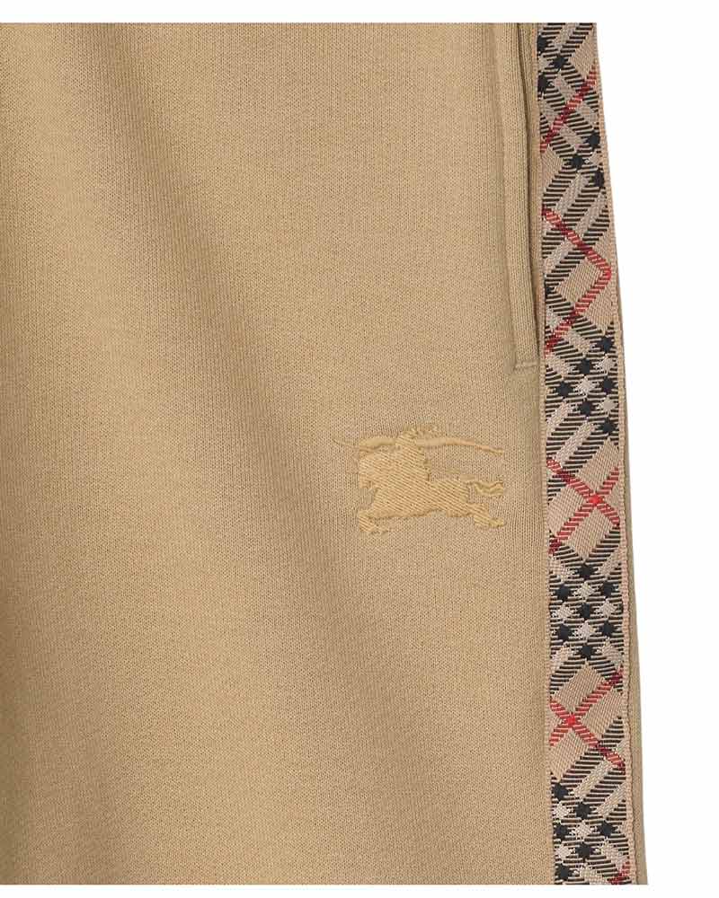 Pantaloni jogger in cotone effetto spugna, caratterizzati da vita elasticizzata con coulisse interna, profili laterali in Burberry Check nel iconico beige archivio, due tasche laterali a filetto e fondo con elastico alla caviglia. Il modello è decorato dall'Equestrian Knight Design ricamato tono su tono.