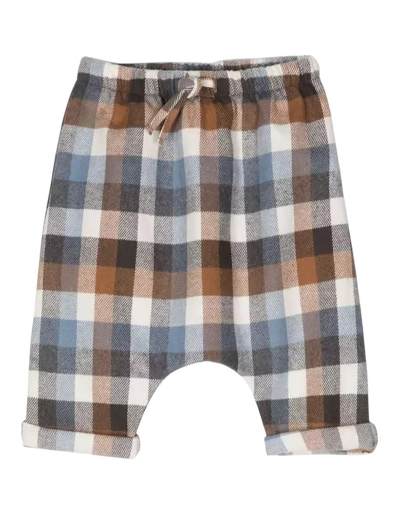 Pantaloni a quadri da neonato, realizzati in caldo cotone con vita elasticizzata e coulisse.