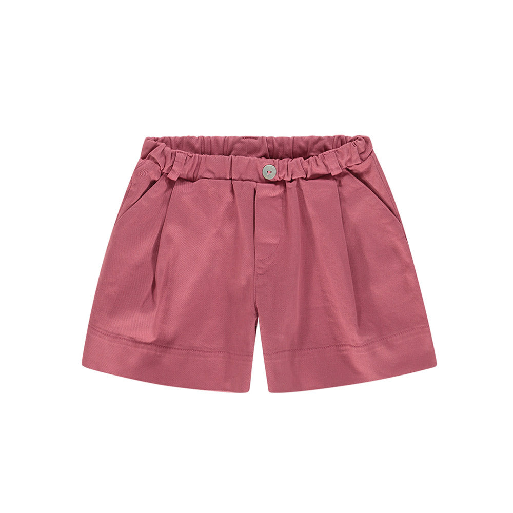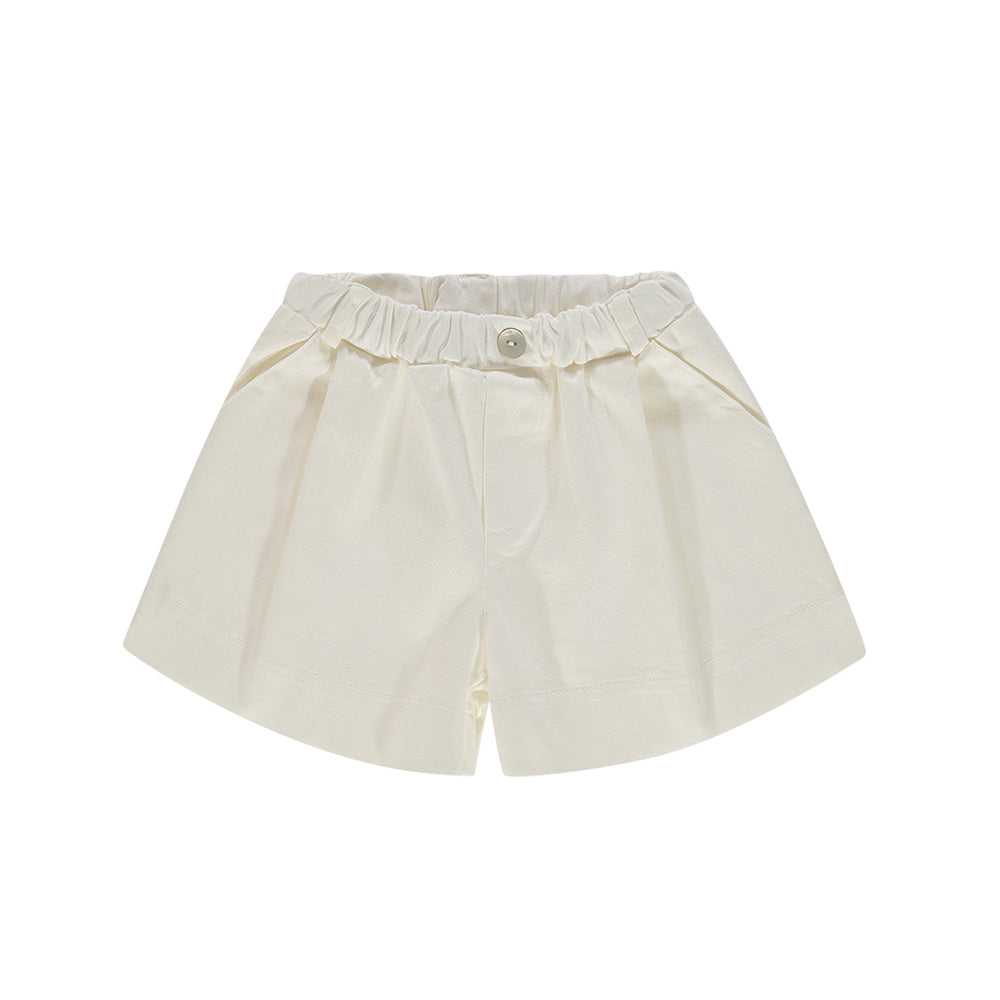 Shorts realizzati in cotone da neonata, caratterizzati da vita elasticizzata con bottoncino decorativo, passanti per la cintura e due tasche laterali all'americana.