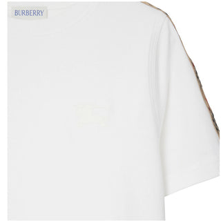 Burberry T-shirt bianca in cotone con finiture in Check 8108903