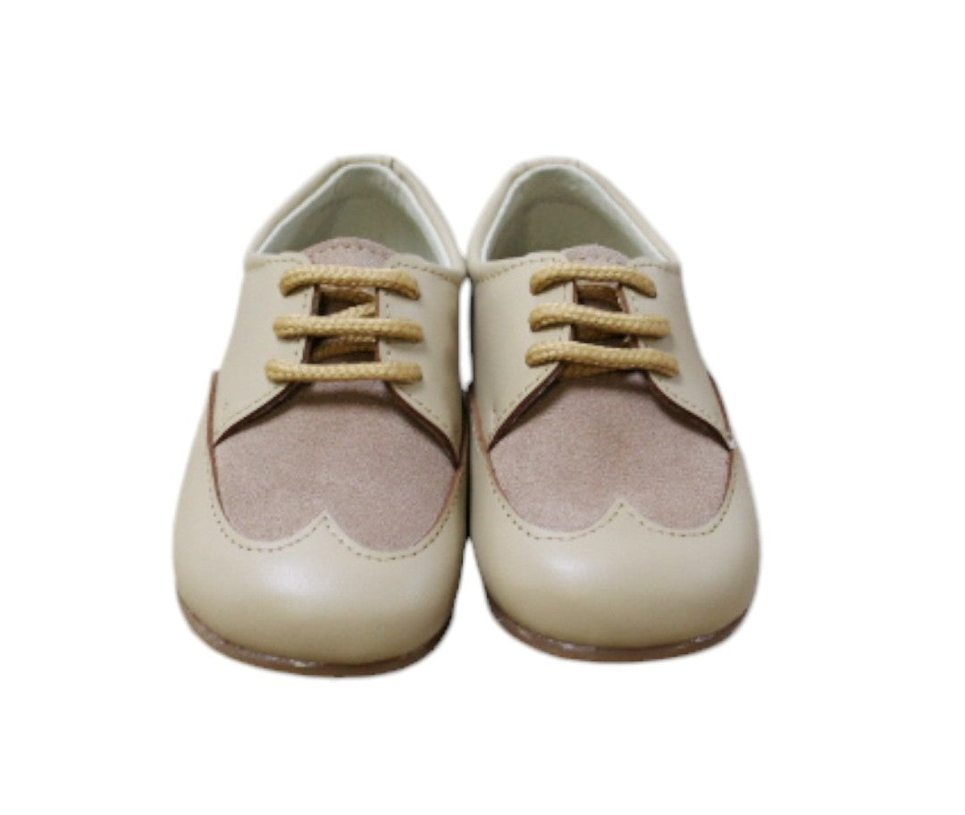scarpina stringata in pelle e camoscio suola in gomma