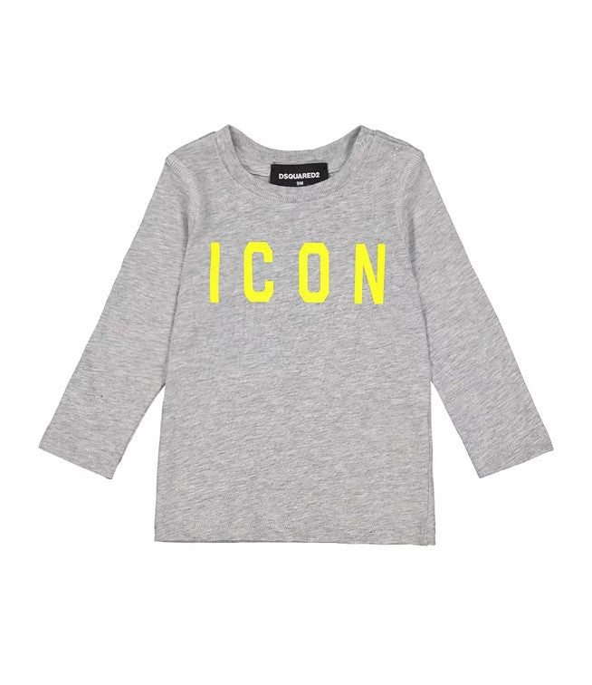 T-shirt girocollo a maniche lunghe, logo stampato sul davanti, chiusura con bottoni a pressione sulla spalla.