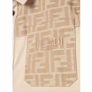 Fendi Camicia Beige In Gabardine Con Logo JMC204-AS5Y