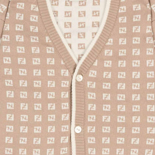 Fendi Cardigan In Cotone Beige Con Logo Jacquard JUG203-AYMY