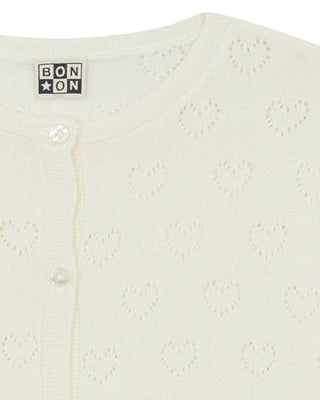Bonton Cardigan avorio con dettagli traforati a cuore PAKNIT323CA