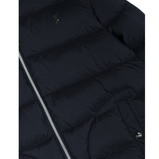 Herno Giubbino blu trapuntato con cappuccio e logo PI000160G
