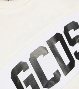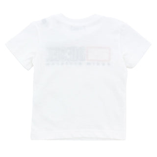 T-shirt girocollo manica corta con logo stampato sul davanti. Clips di chiusura sulla spalla.