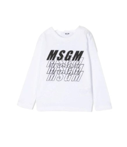 T-shirt girocollo a maniche lunghe con logo applicato sul davanti. Chiusura con bottoni a pressione sulla spalla.