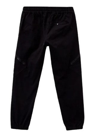 Pantalone in cotone, modello cargo, tasca a filetto, elastico in vita e alla caviglia.
