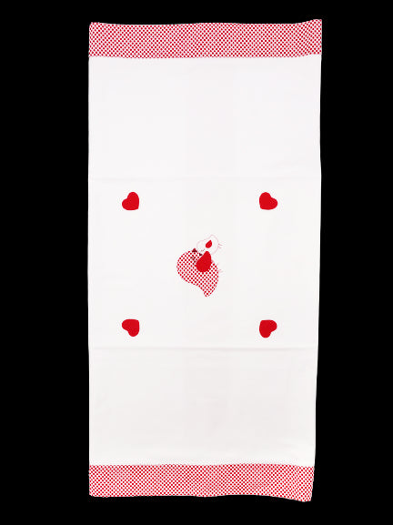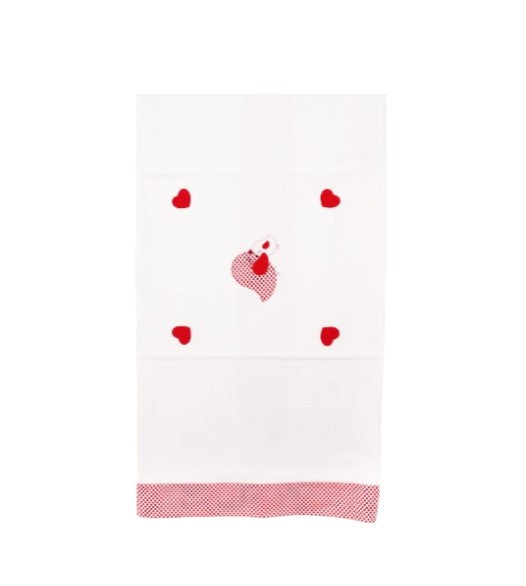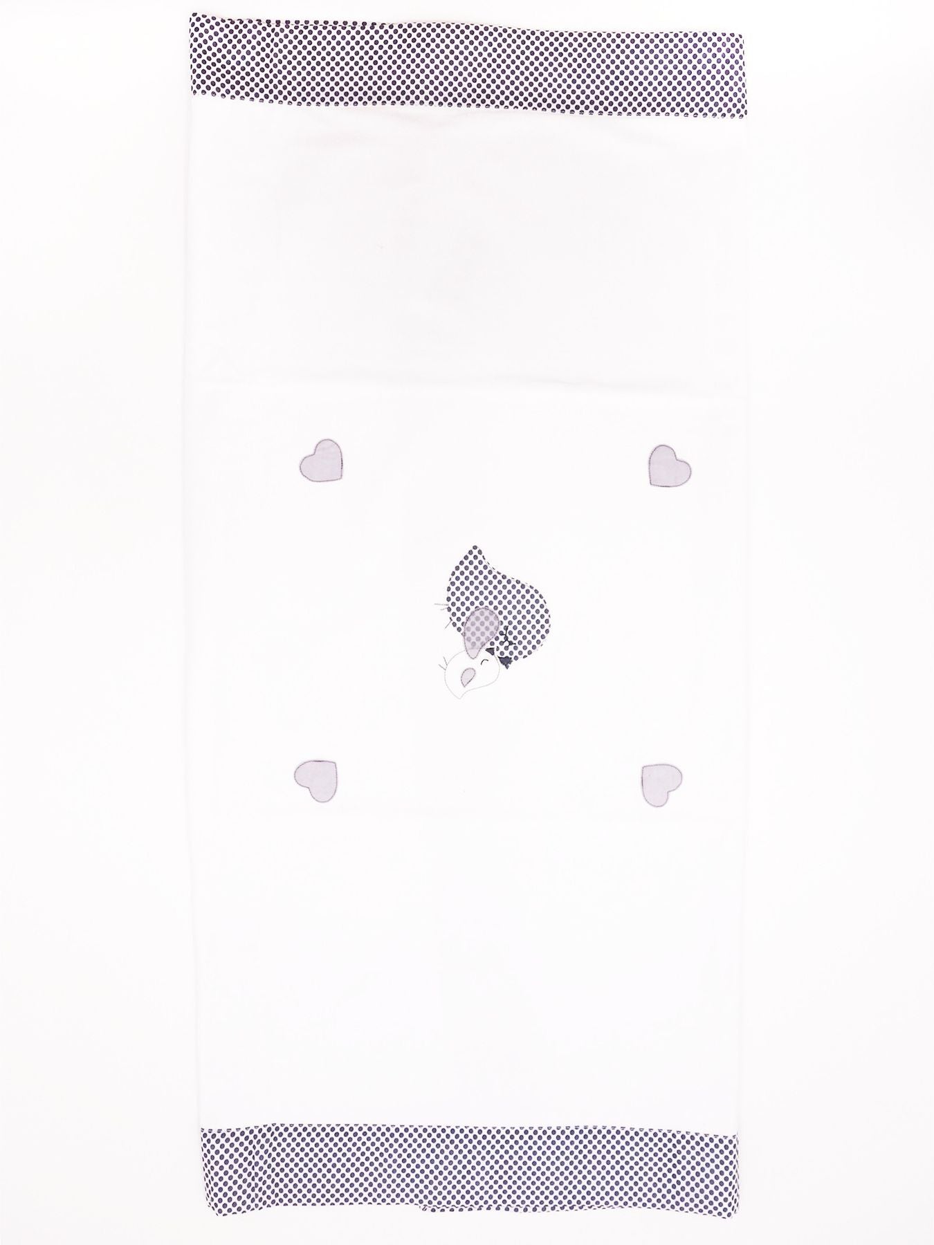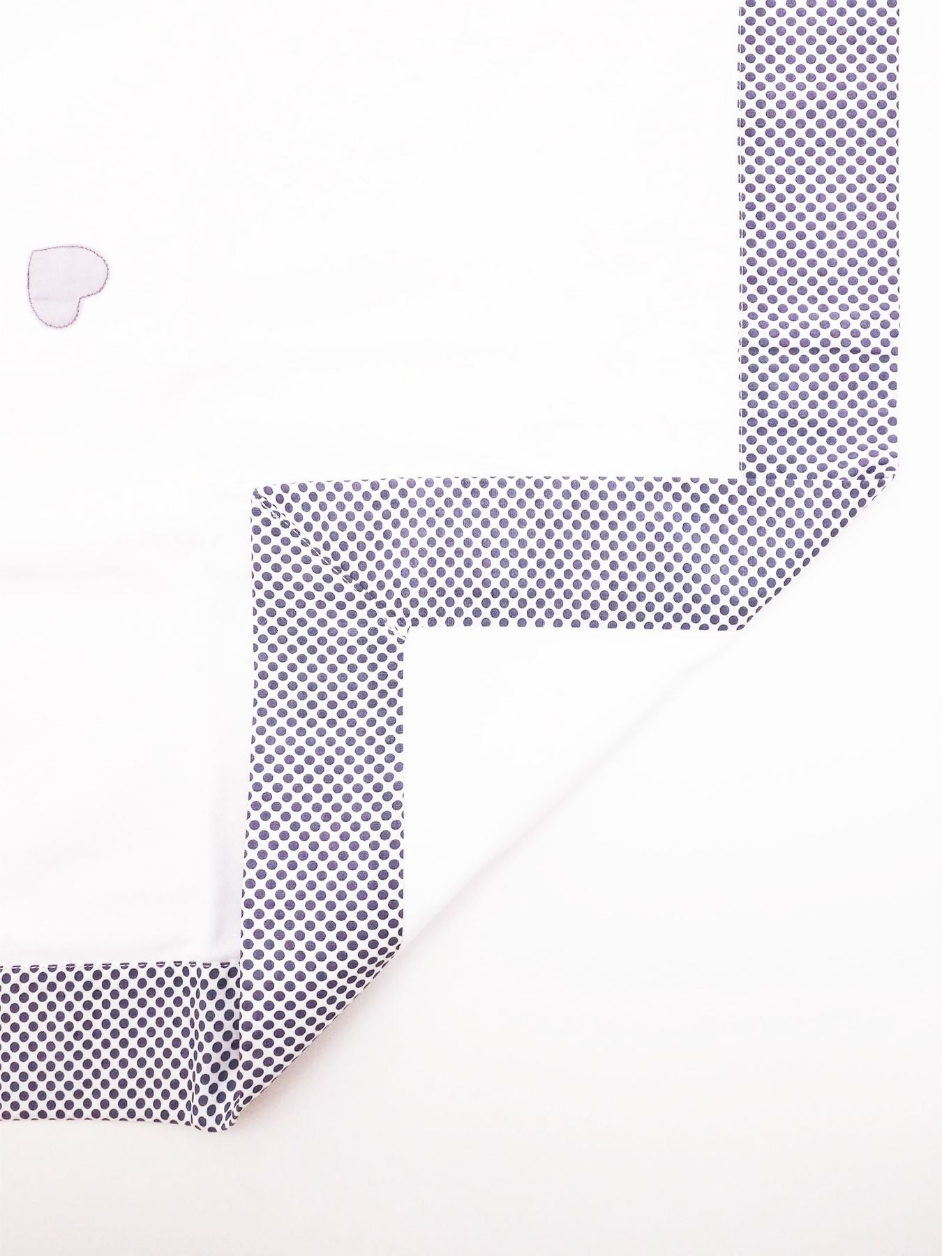 Copertina Il Gufo Neonato bianca con bordura in fantasia pois a contrasto. Particolare centrale rappresentato da un gufetto e quattro cuori.