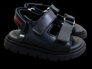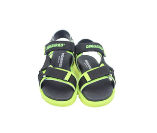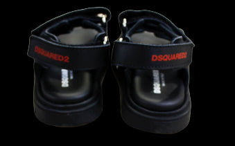 Sandali Dsquared2 con logo rosso sullo strappo sul retro.