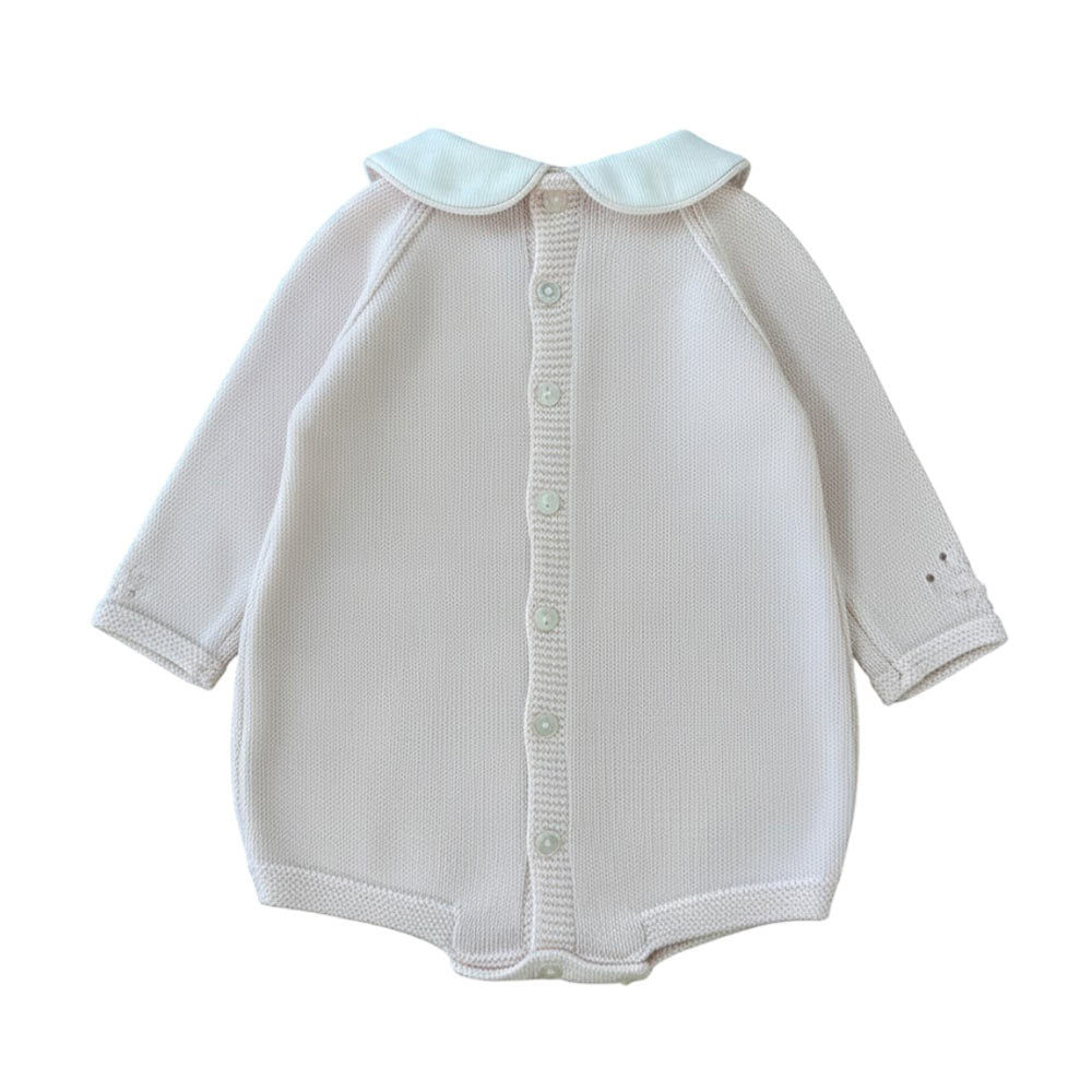 Pagliaccetto misto lana con trafori e nodini sul davanti collo tondo in piquet chiusura con bottoncini modello culotta