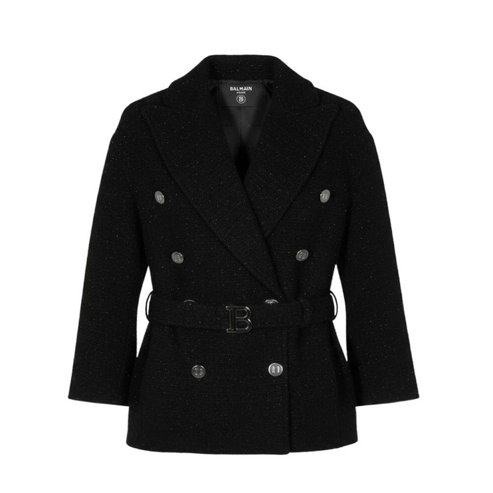 Balmain Cappotto nero doppiopetto da bambina BT2A40-E0126