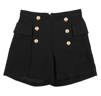 Shorts da bambina con bottoni decorativi sul davanti, chiusura sul retro con zip.