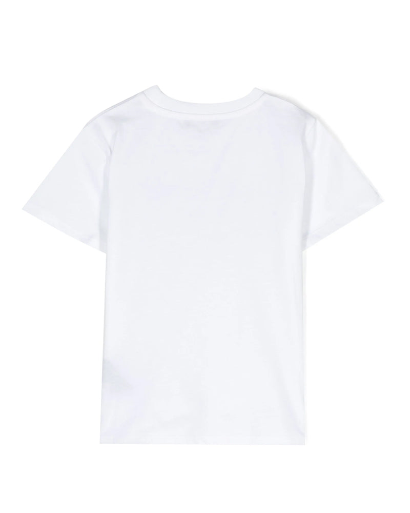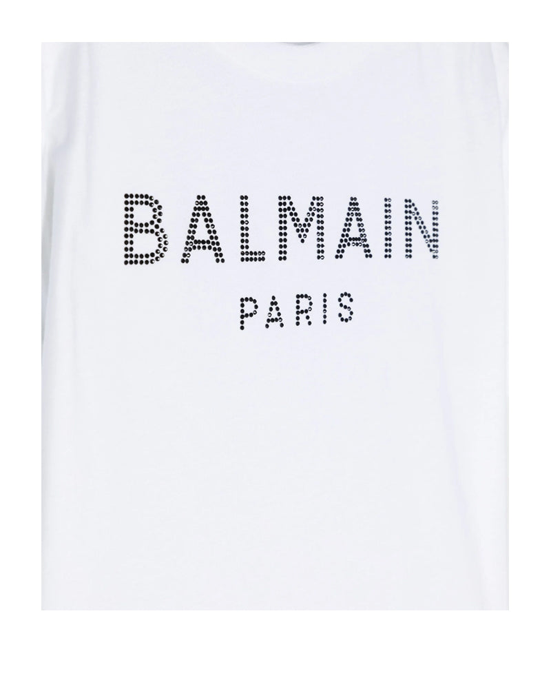T-shirt in cotone con logo decorato di strass. Modello con girocollo, spalla cadente, maniche corte e orlo dritto.