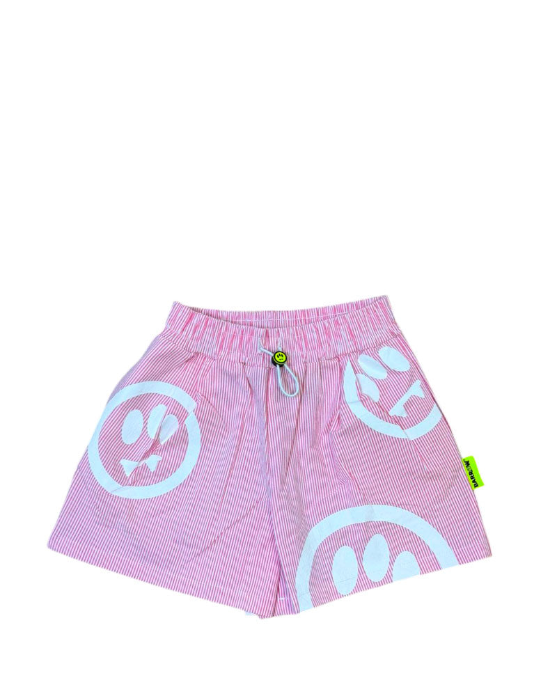 Shorts in popeline a righe da bambina, ideali per un look estivo fresco e divertente. La vita elasticizzata con coulisse assicura una vestibilità comoda e regolabile, mentre la stampa smile all-over aggiunge un tocco di allegria e originalità al capo. Realizzati con una composizione di 98% cotone e 2% elastan, garantiscono comfort e libertà di movimento per tutte le attività quotidiane. Perfetti per le giornate più calde, questi shorts sono un must-have per un look casual, vivace e alla moda.