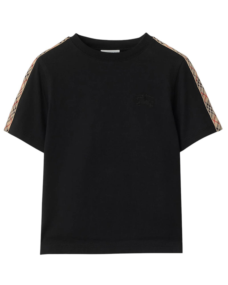 Burberry T-shirt nera in jersey con finiture Check 8108033