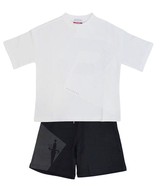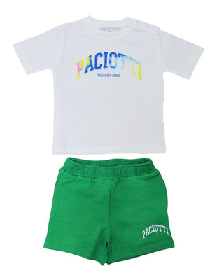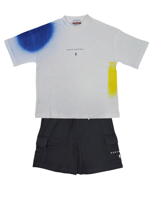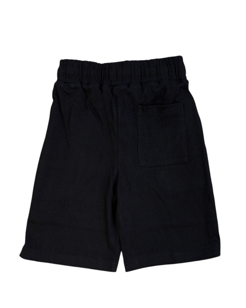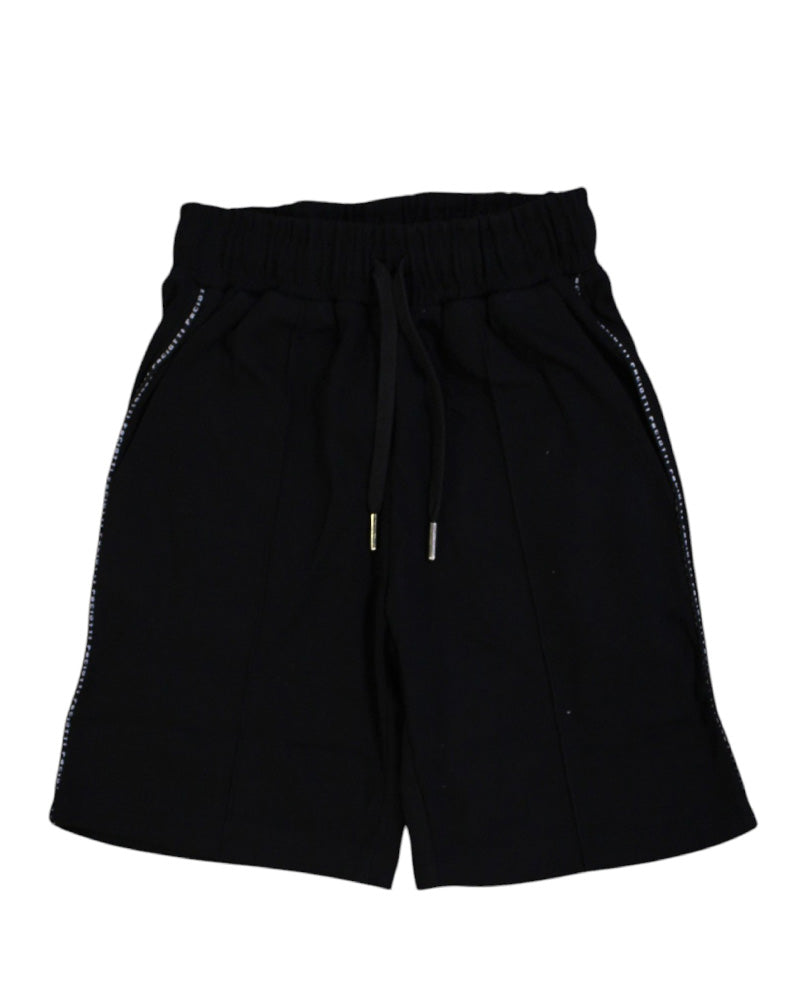 Bermuda in cotone con eladtico e colulisse in vita, tasche america, cuciture sul davanti, applicazione laterlae logata.