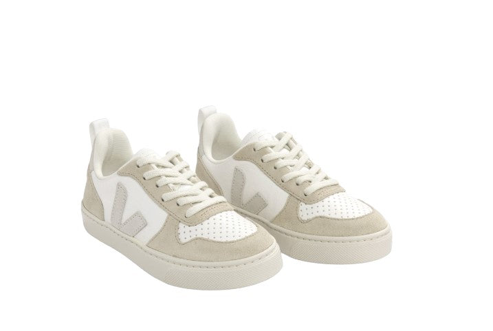 Sneakers Veja modello V-10. Sneaker realizzate in ecopelle C.W.L. , tela di cotone rivestita con materiali biologici e sostenibili.