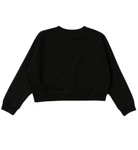 Felpa cropped da bambina a manica lunga, collo rotondo, stampa logo sul davanti, rifiniture a costa.