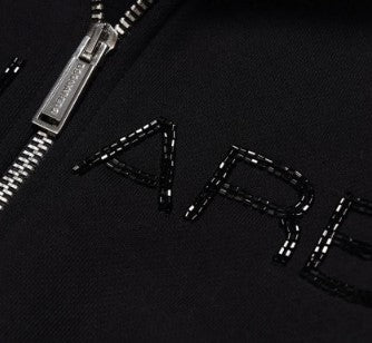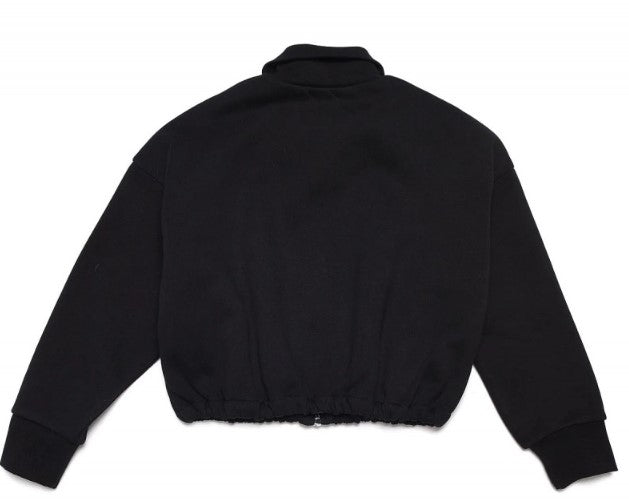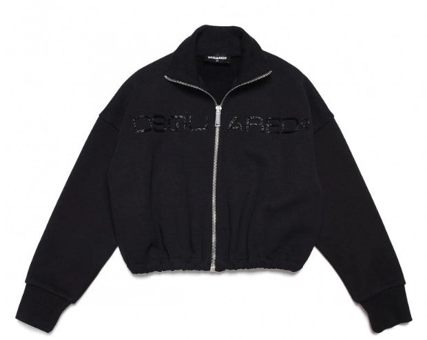 Felpa crop con zip, elastico all'orlo, logo ricamato con corallini in contrasto sul davanti.