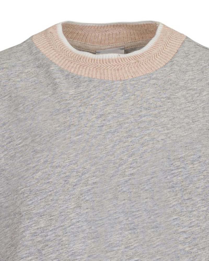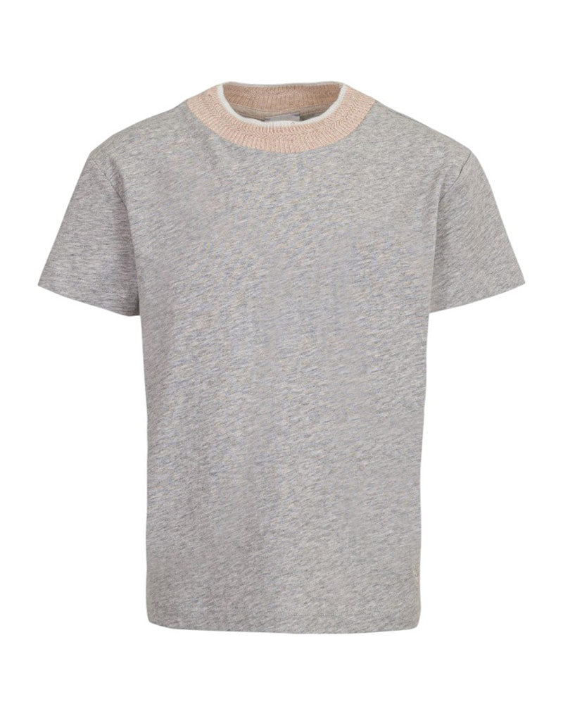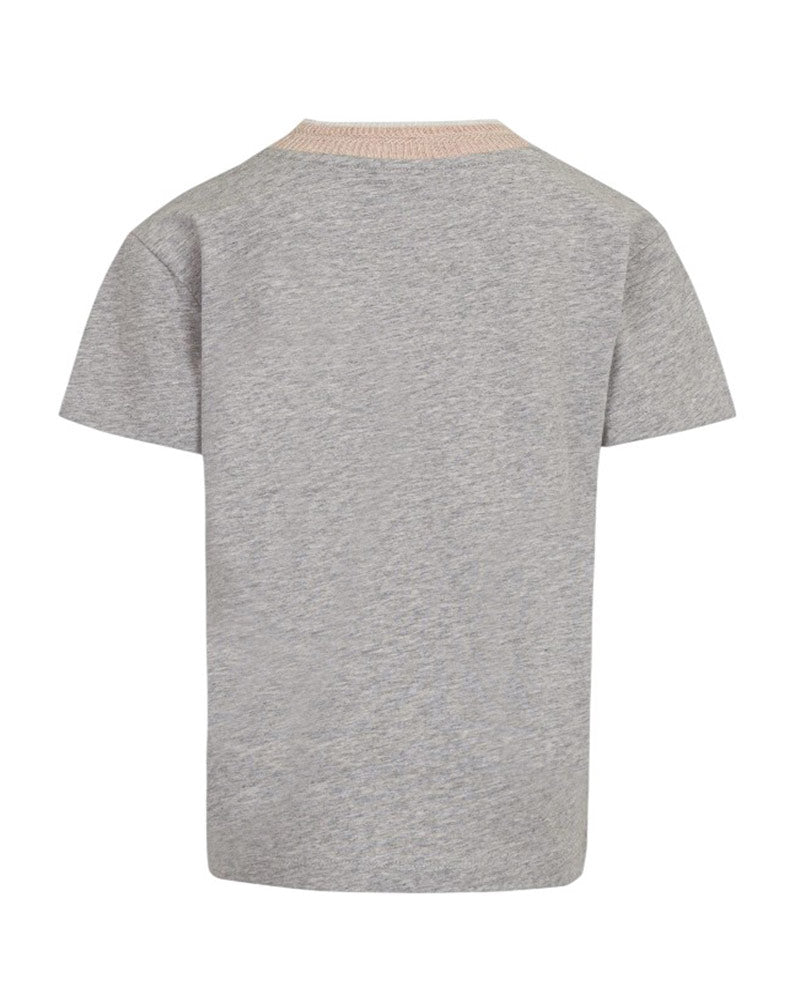 T-shirt grigia a maniche corte con collo a costine realizzata in jersey di cotone. È decorata con logo ricamato sul davanti.