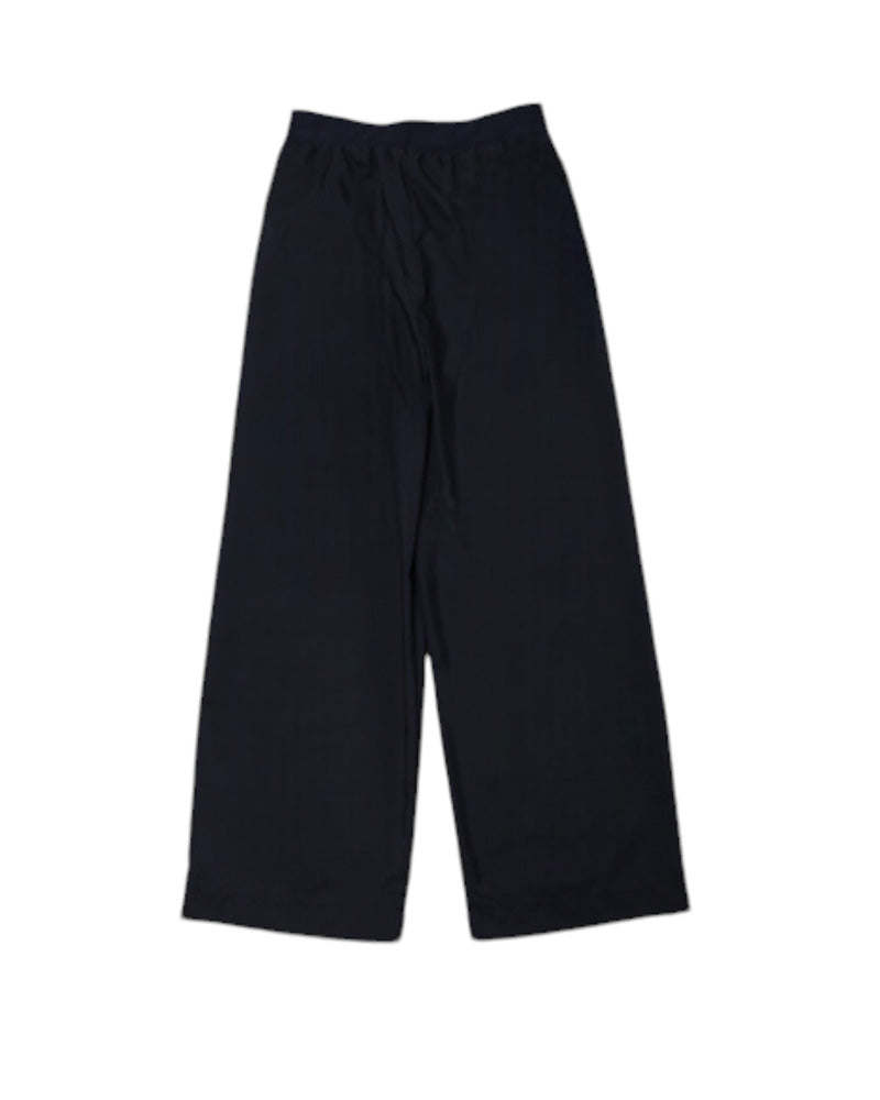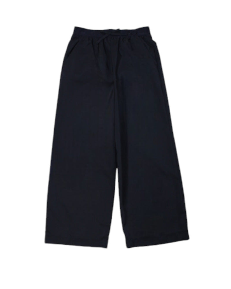 Pantalone in viscosa a palazzo, vita elasticizzata, fiocchetto applicato sul bustino, tasche laterali.