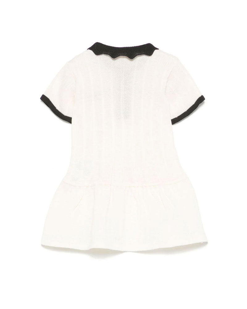 Questo abito per neonata Elisabetta Franchi La Mia Bambina è realizzato in cotone 100%, garantendo morbidezza e traspirabilità per la pelle delicata. Il design bianco con abbottonatura frontale corta facilita la vestizione, mentre le maniche corte e i dettagli a coste con bordi a contrasto aggiungono un tocco di eleganza e comfort. Perfetto per le occasioni speciali o per un look raffinato quotidiano.
