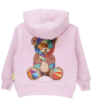 Felpa con cappuccio, simbolo sul davanti e stampa sul retro.