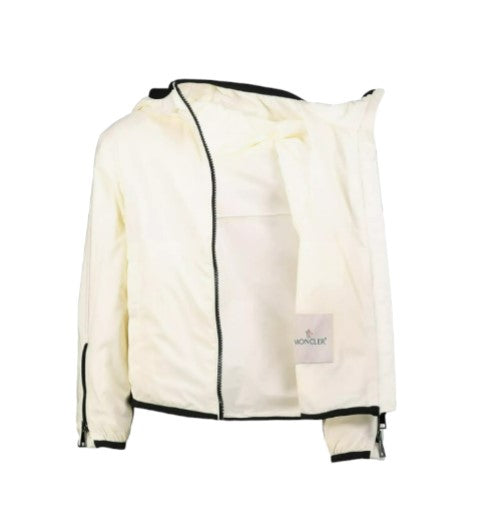 Giubbino in nylon con cappuccio, chiusura anteriore con zip, tasche laterali con clips, patch logo applicato sulla manica.