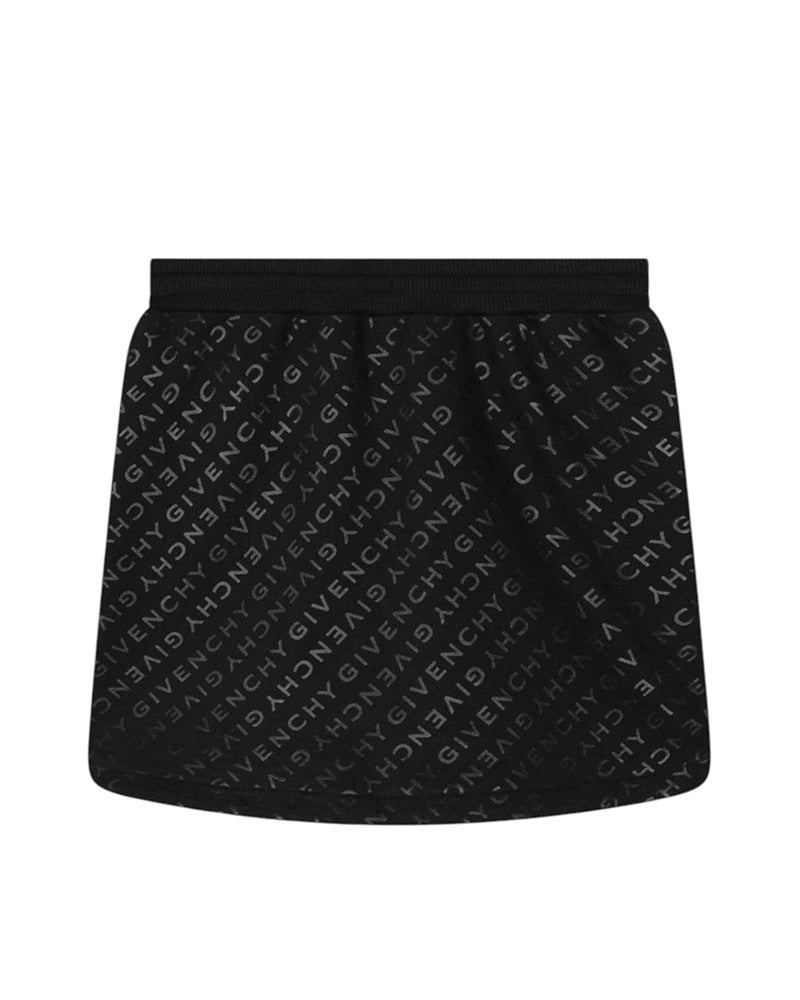 Gonna realizzata in felpa di cotone sgarzato con stampa logo jacquard all-over, vita elasticizzata con coulisse e orlo dritto.