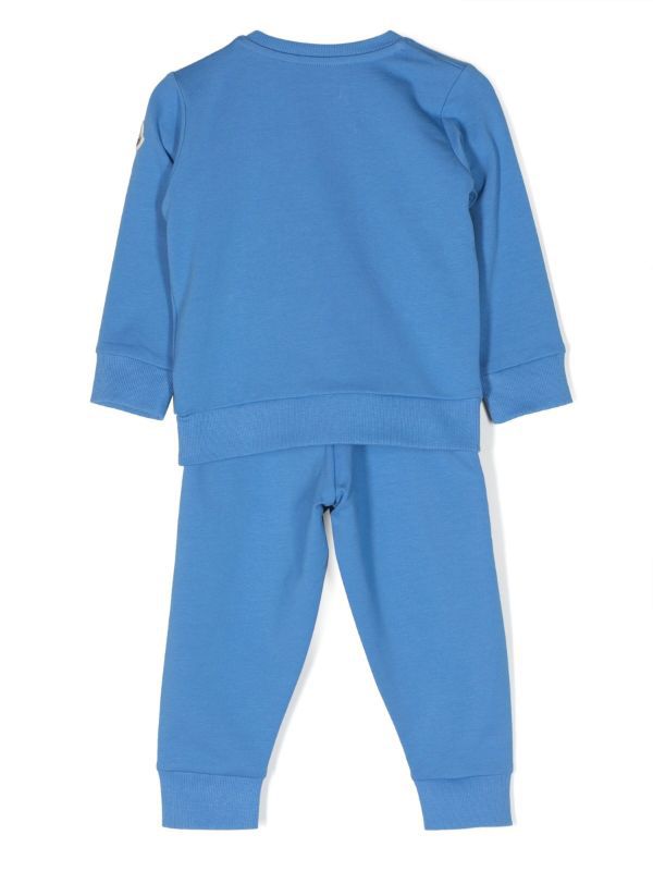 Completo due pezzi formato da felpa girocollo con logo stampato sul davanti clips di chiusura sulla spalla e pantalone jogger.