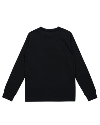 T-shirt girocollo a maniche lunghe realizzata in cotone, presenta stampa logo frontale, colletto a costine e orlo dritto.
