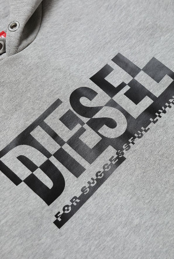 Felpa con cappuccio, logo stampato sul davanti, orlo e polsi in costa.
