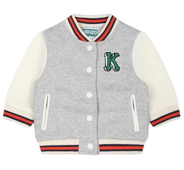 Bomber stile college realizzato in felpa di cotone, presenta chiusura frontale con bottoni a pressione, patch logo punto spugna applicato sul petto e sulla schiena, tasche laterali e rifiniture in maglia a costine.