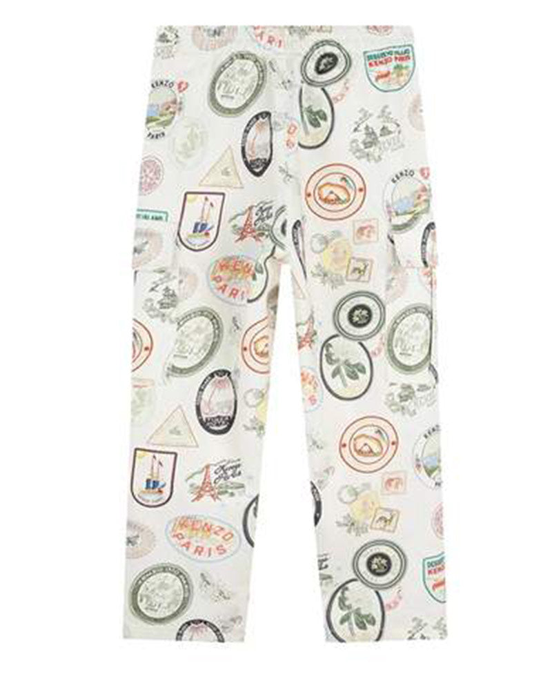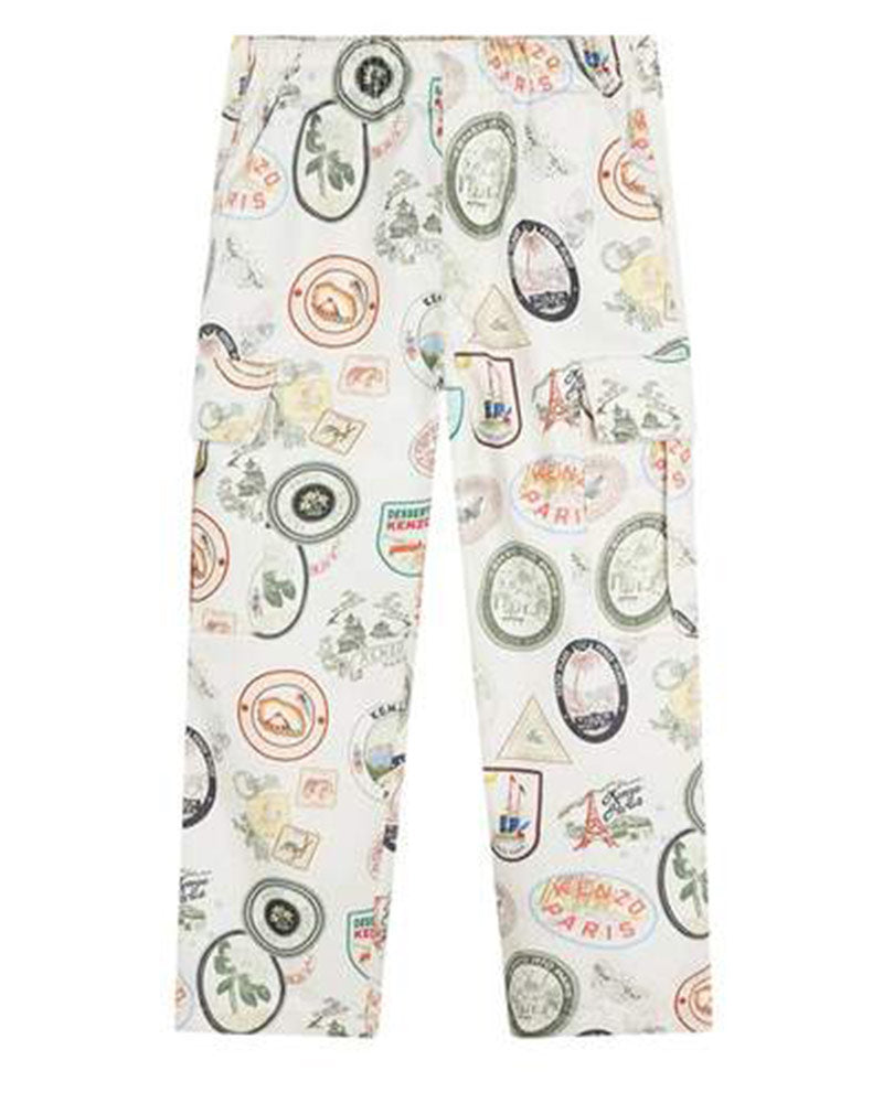 Pantaloni cargo da bambino realizzati in denim di cotone. Presentano fantasia all-over, vita elasticizzata, due tasche laterali all'americana e due tasche cargo ai lati.
