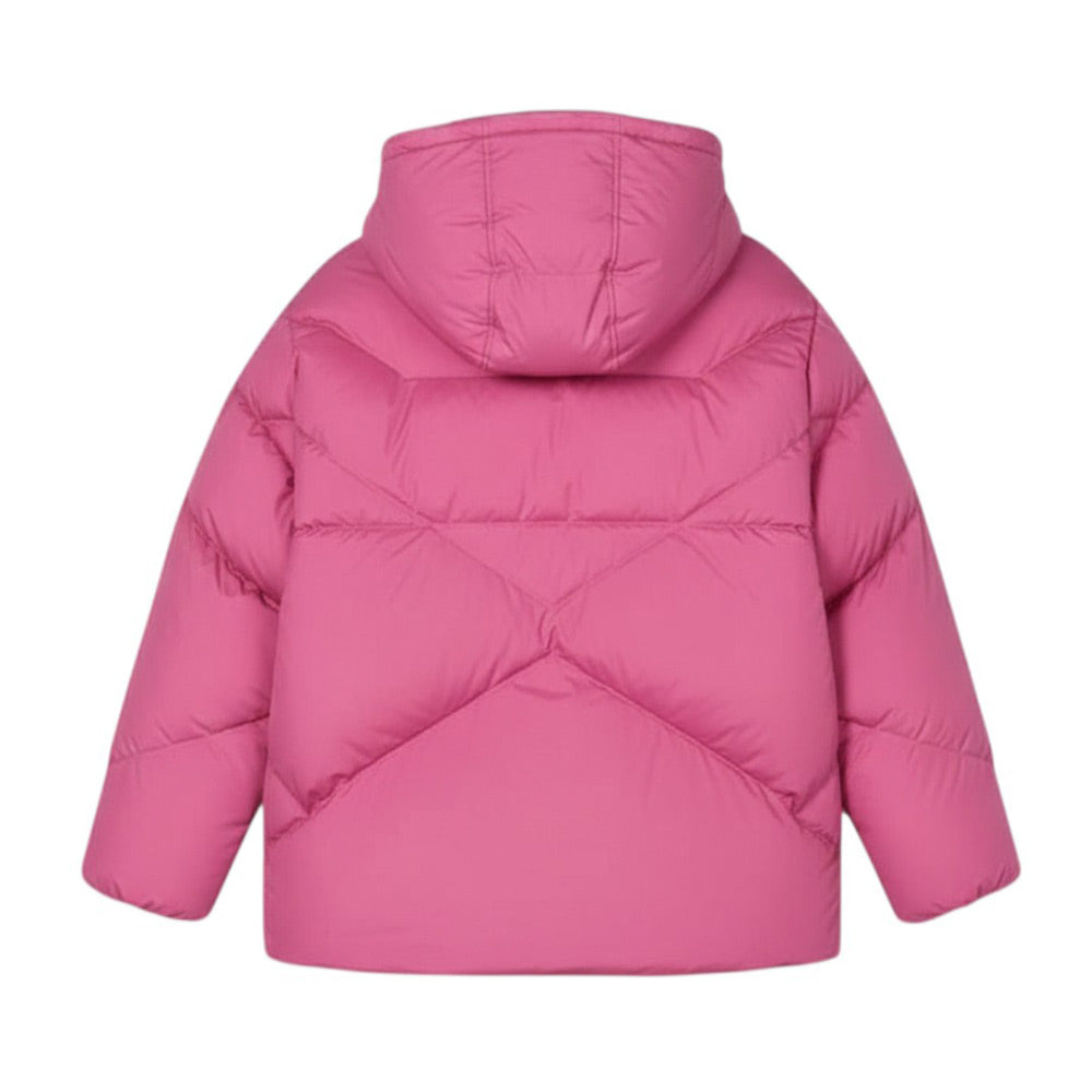 Giubbino imbottito da bambina effetto opaco. Presenta design trapuntato, cappuccio fisso, maniche lunghe con apertura a zip, chiusura frontale con cerniera, due tasche frontali a filo, orlo con coulisse regolabile.