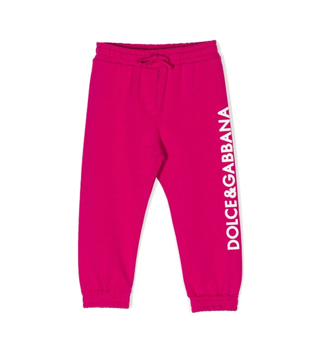 Pantalone in felpa di cotone, elastico e coulisse in vita, simbolo e logo stampato sulla gamba.