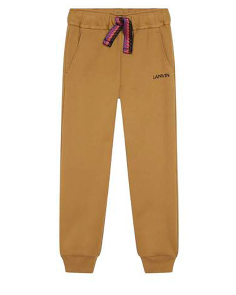 Pantaloni jogger realizzati in felpa di cotone garzato. Presentano vita elasticizzata, coulisse con motivo a spina di pesce, tasche laterali oblique, taschino posteriore con zip, fodera in pile e fondo con elastico alla caviglia. Sono decorati con logo ricamato sul davanti.