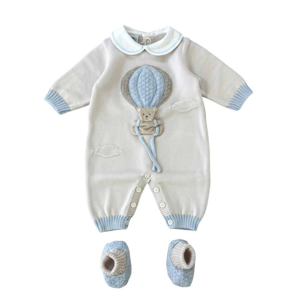 Tutina in lana con mongolfiera e orsetto in rilievo