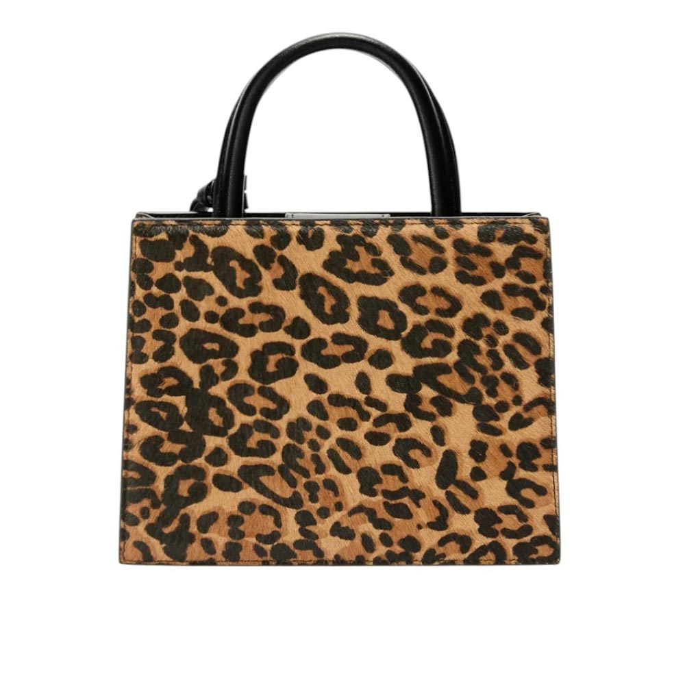 La Shop Bag Mini in pelle e cavallino maculato, caratterizzata da una struttura rigida dalla silhouette squadrata ed elegante, impreziosita da una pattina con chiusura magnetica. Dotata di tracolla removibile, per un utilizzo versatile sia a mano che a spalla. Interno foderato in cotone, completato da una pratica tasca in pelle.