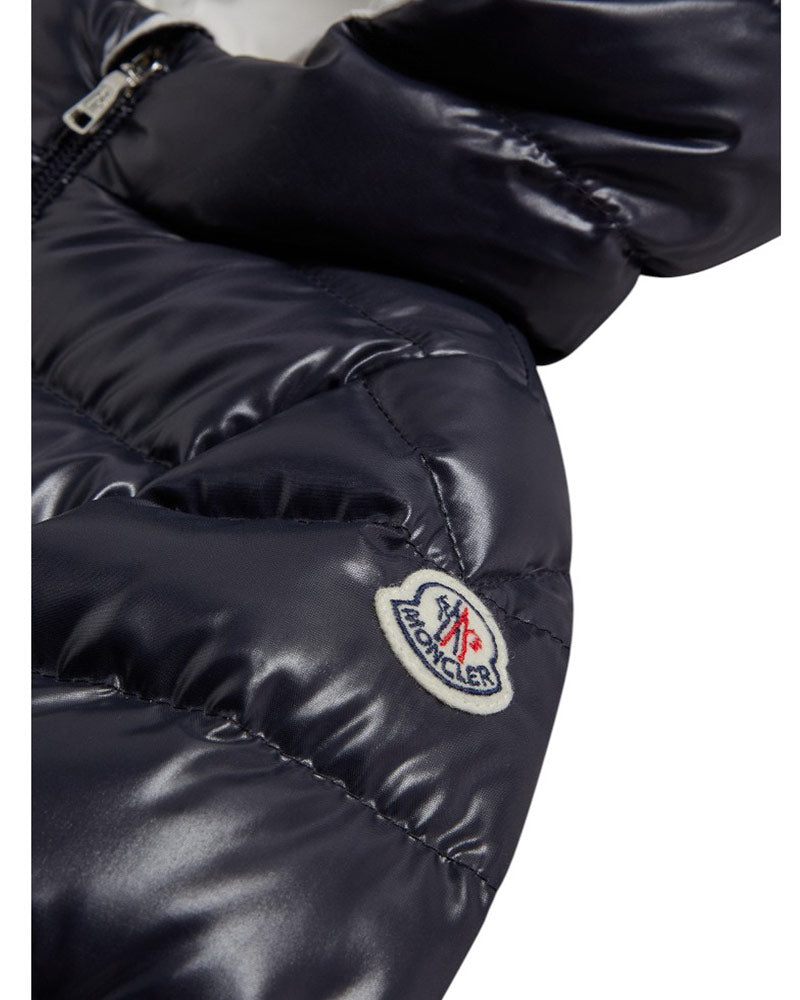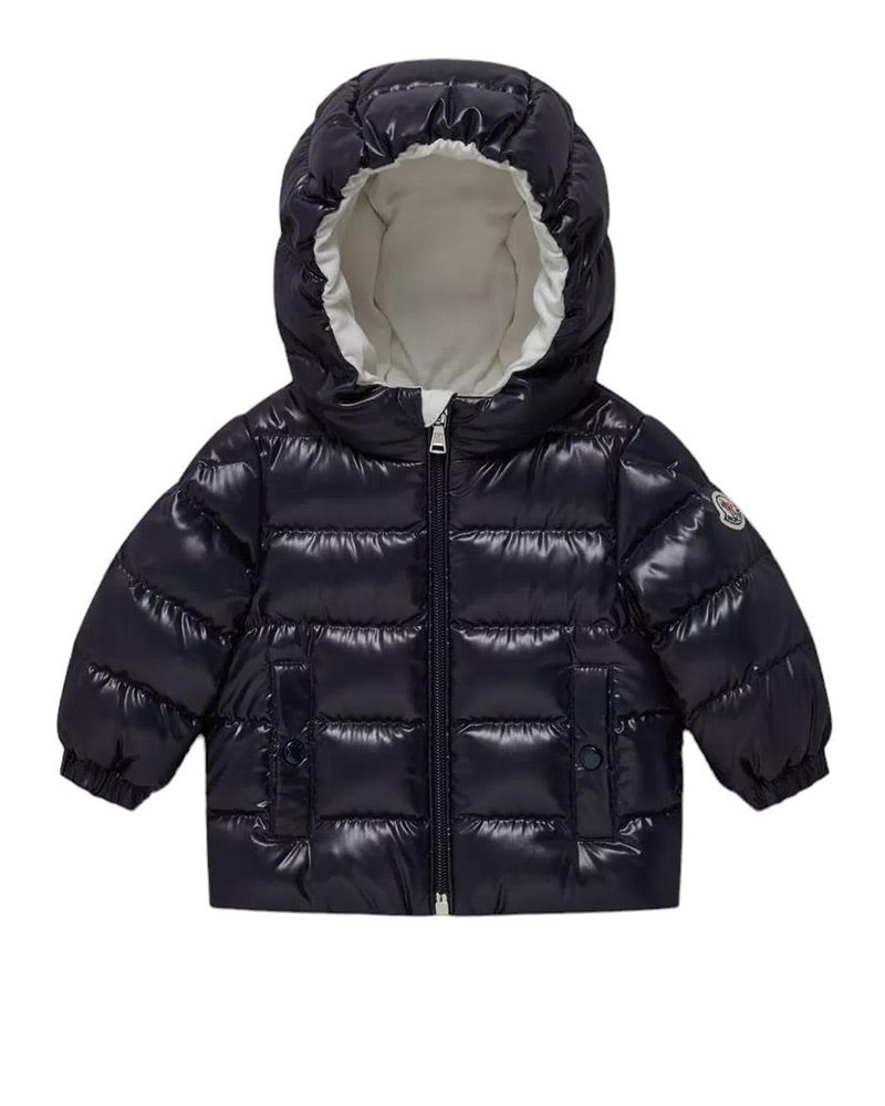 Giubbino imbottito Anand da neonato realizzato in nylon semilucido. Presenta design trapuntato, cappuccio fisso, chiusura frontale con zip, maniche lunghe con polsini elasticizzati, due tasche laterali a filo e orlo elasticizzato. È decorato con logo ricamato tone on tone sul retro e con patch logo applicata sulla manica.