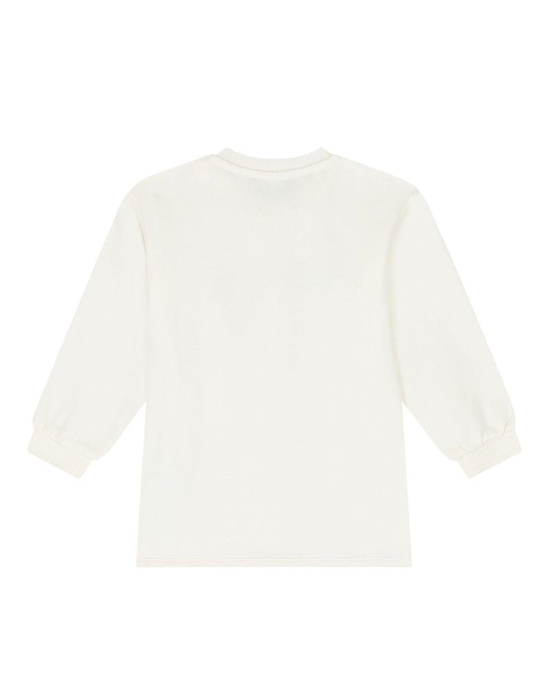 Vestina girocollo realizzata in jersey di cotone felpato. Presenta maniche lunghe, chiusura con clips sulla spallina, stampa Teddy e logo frontale, collo e polsi elasticizzati a coste.