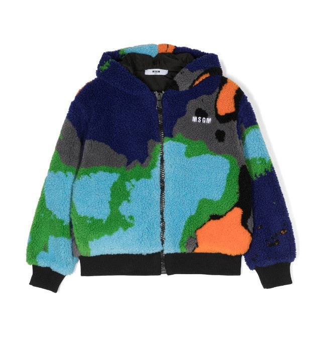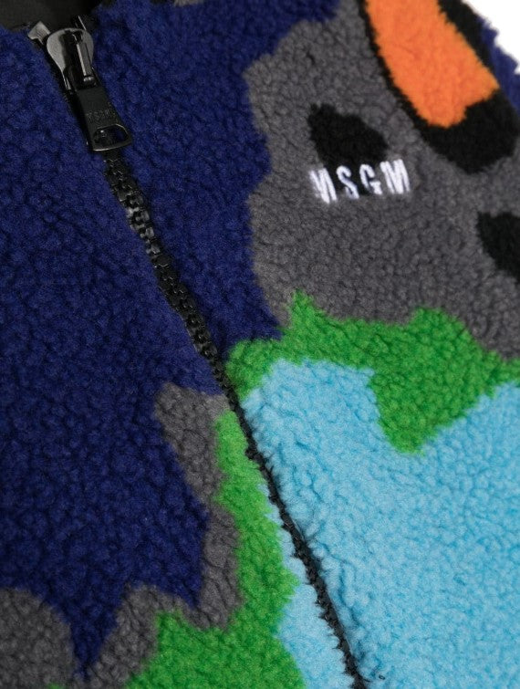 Msgm Giacca Teddy con fantasia e logo F3MSJBZH115