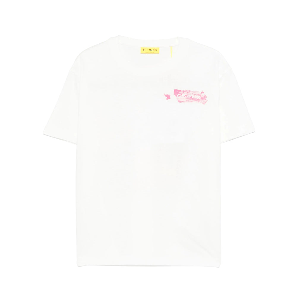 T-shirt realizzata in jersey di cotone, caratterizzata da collo rotondo a costine, maniche corte e orlo dritto. È decorata con logo Off-White stampato sul petto e con motivo a freccia sul retro.