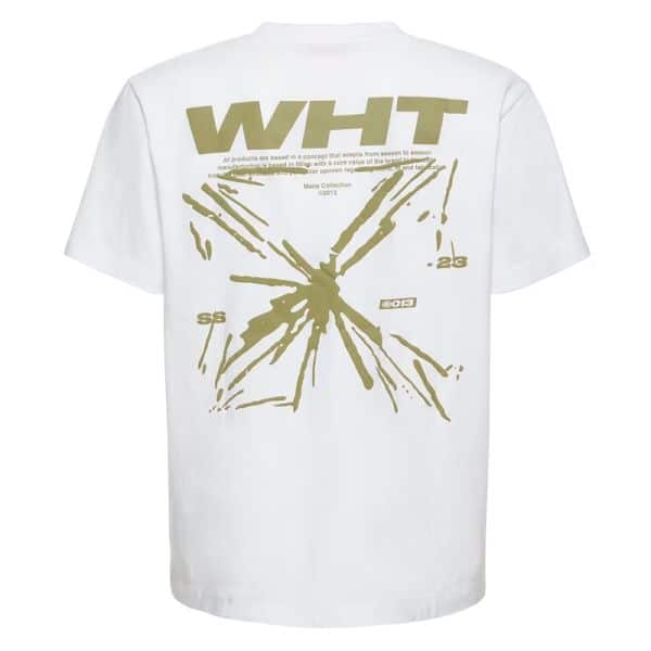 T-shirt m/m OFF White con stampa sul davanti e sul retro.
